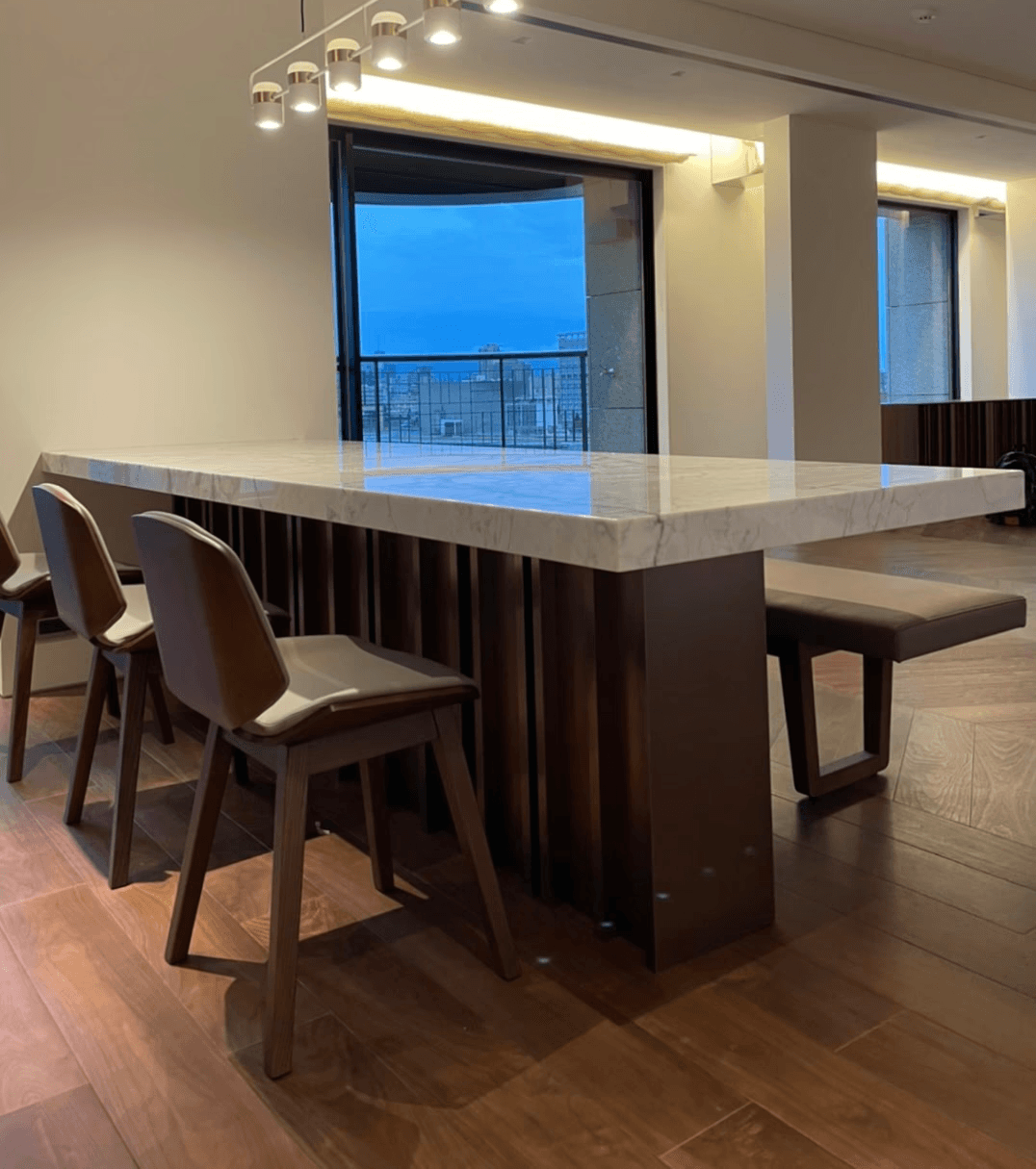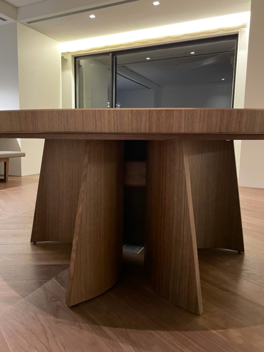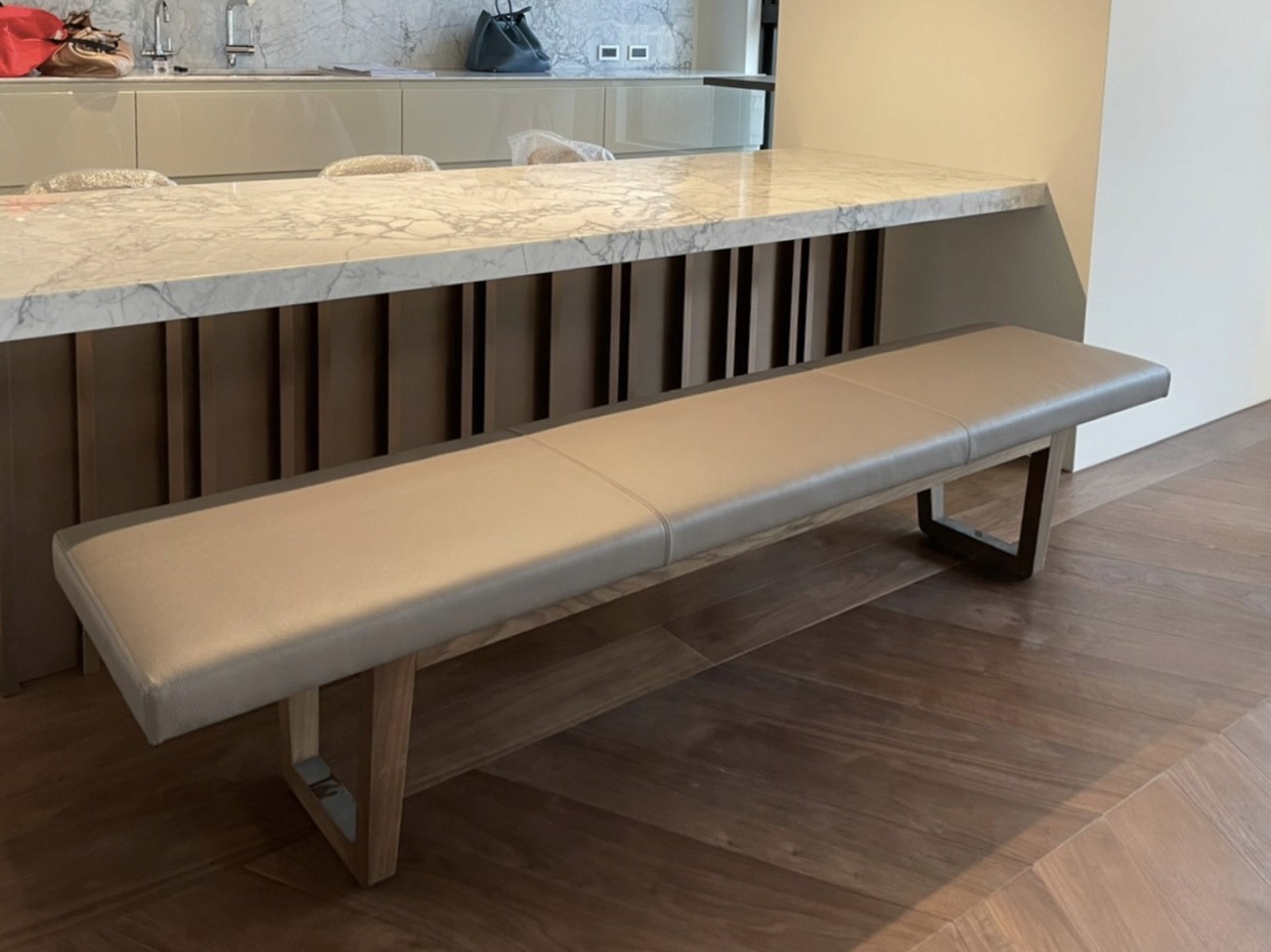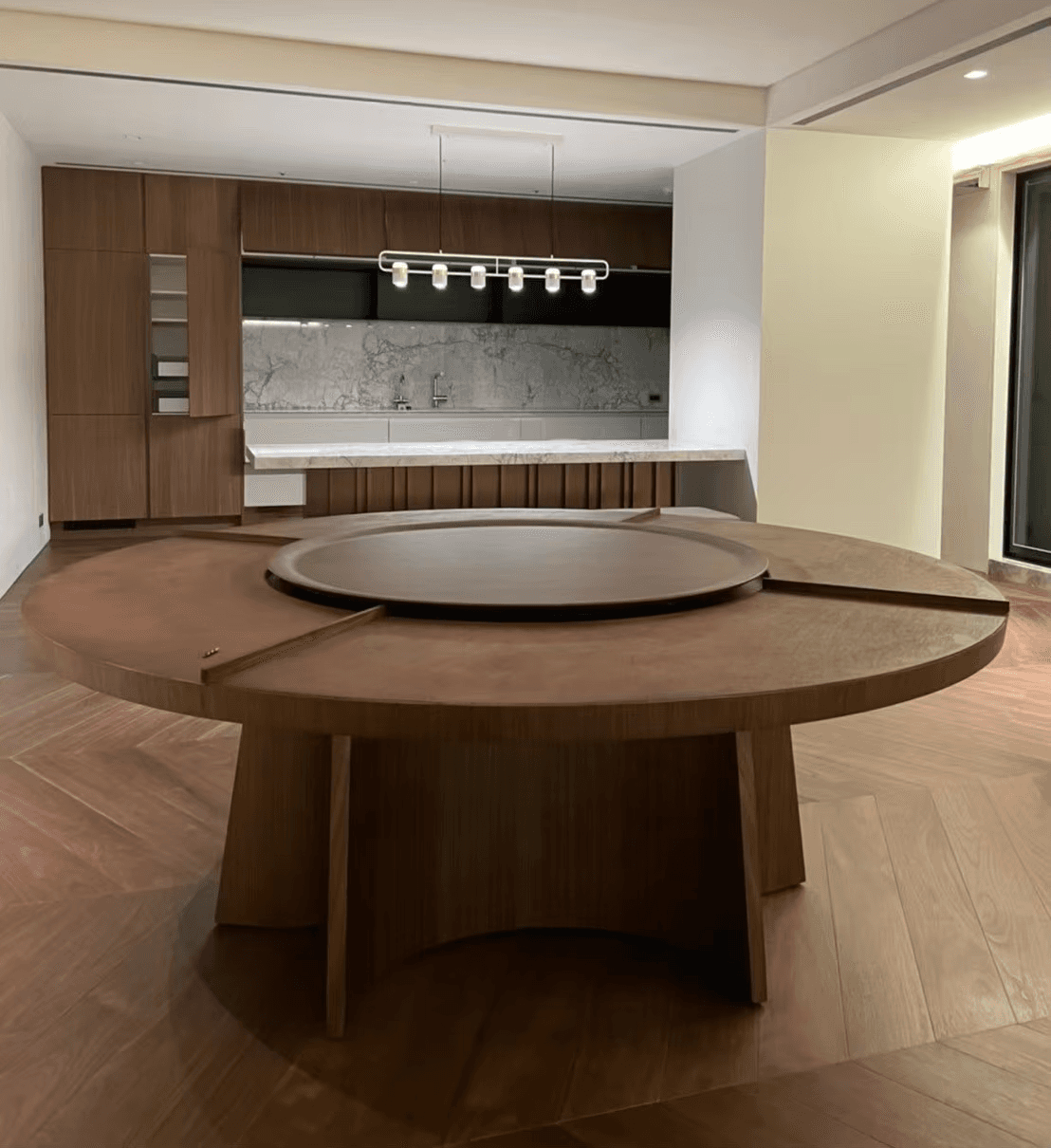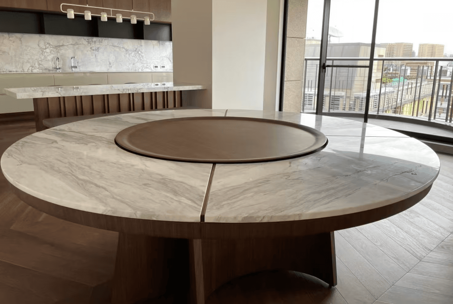 在製作過程中,我們忠實實現每一個設計細節。無論是櫃體上的木頭拼接,餐桌的弧形桌腳,還是麻將桌上精緻的卡楯細節,我們的師傅們都以匠心打造,並以石材和皮革精緻收邊,實現異材質的完美融合,達成視覺與觸感的雙重享受。
