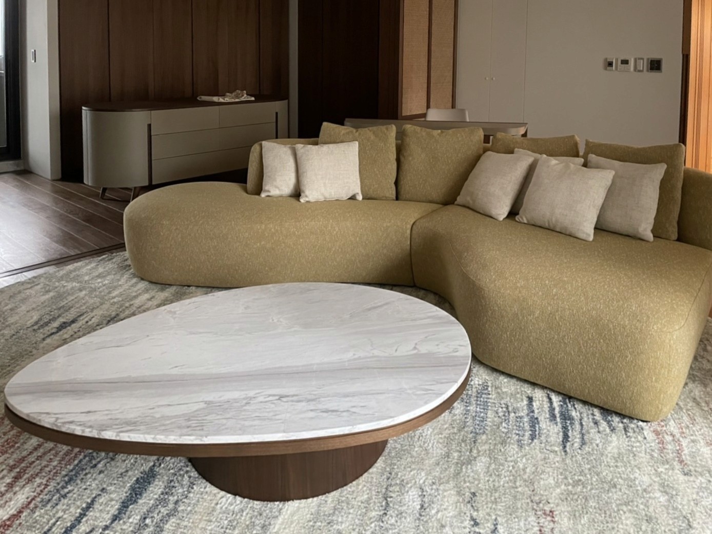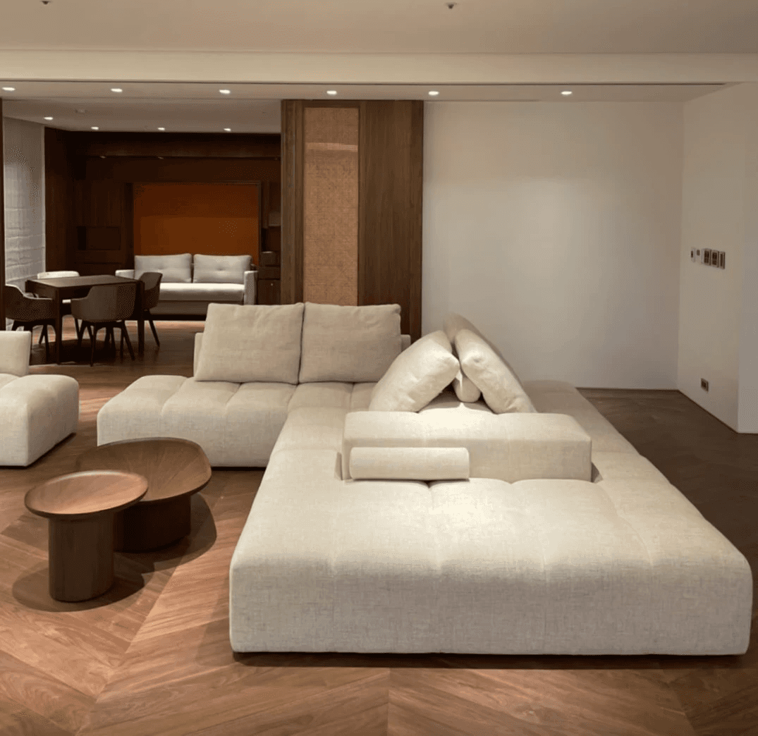 此外,兩個客廳的沙發也根據不同需求訂製而成,呈現出各自獨特的風格。無論是柔和優雅的氛圍,還是自由開放的模組沙發,我們都以多年製作經驗,選用進口布料,打造出既柔軟舒適又厚實包覆的家具,回應住家空間所需的溫馨感受。
