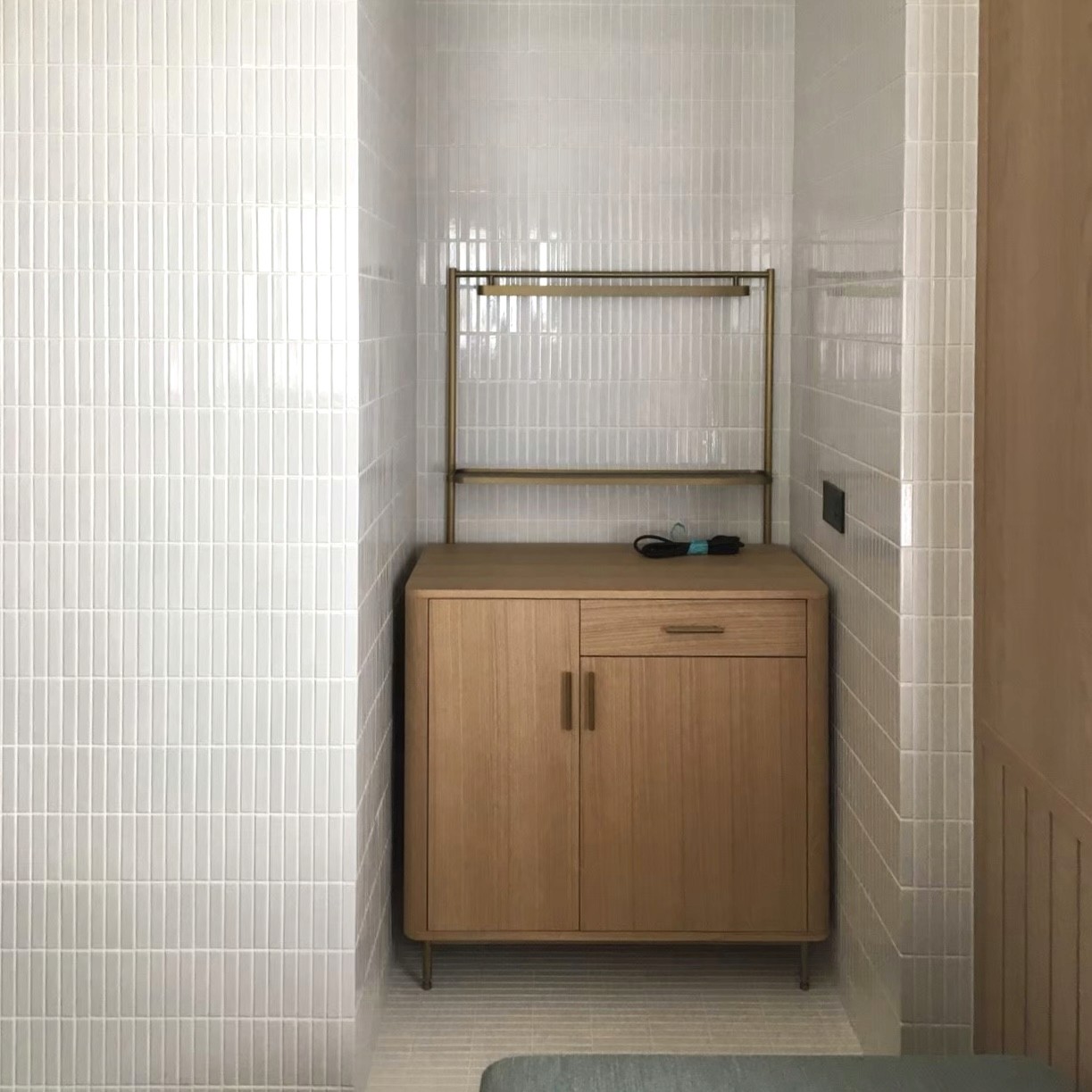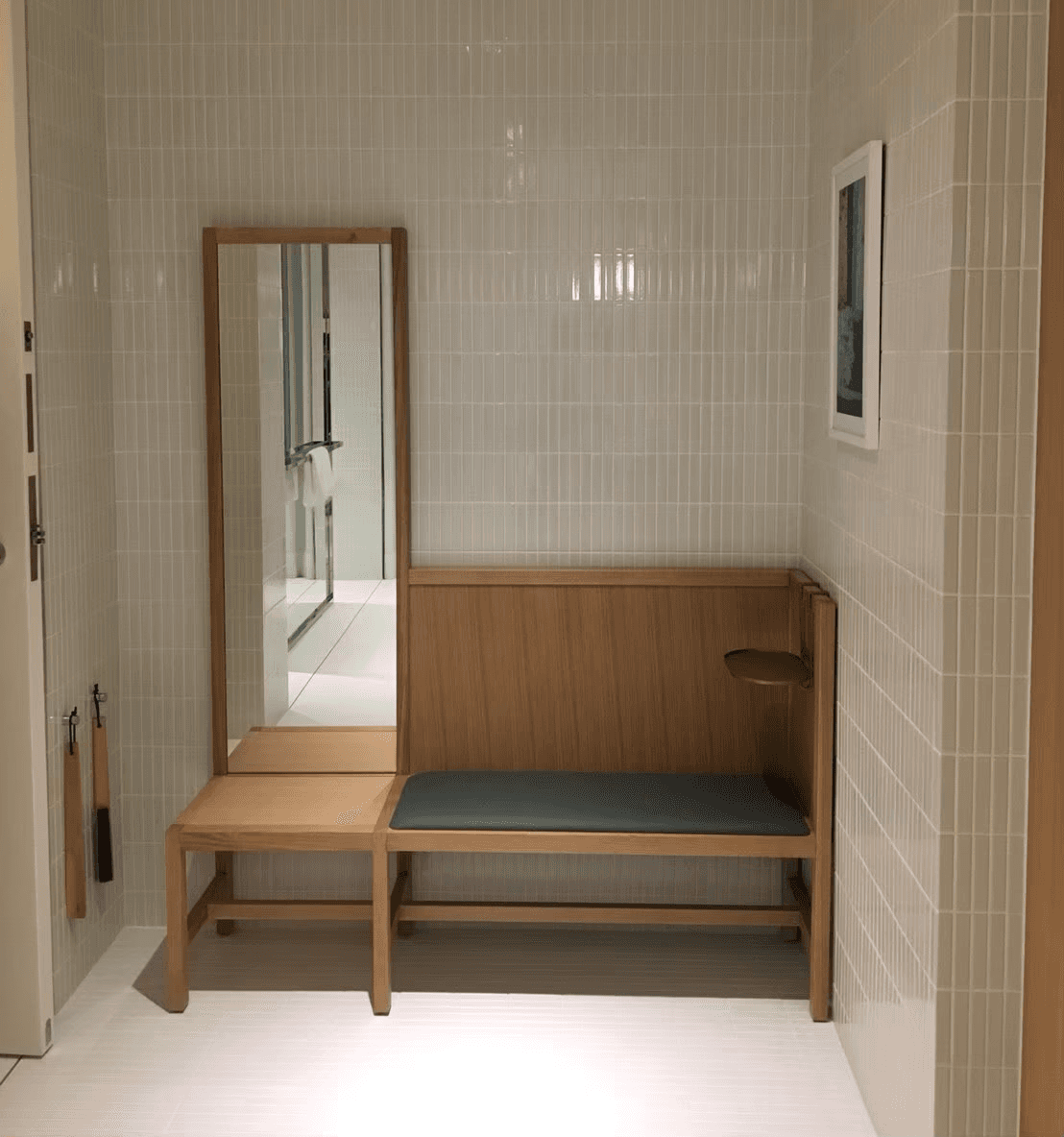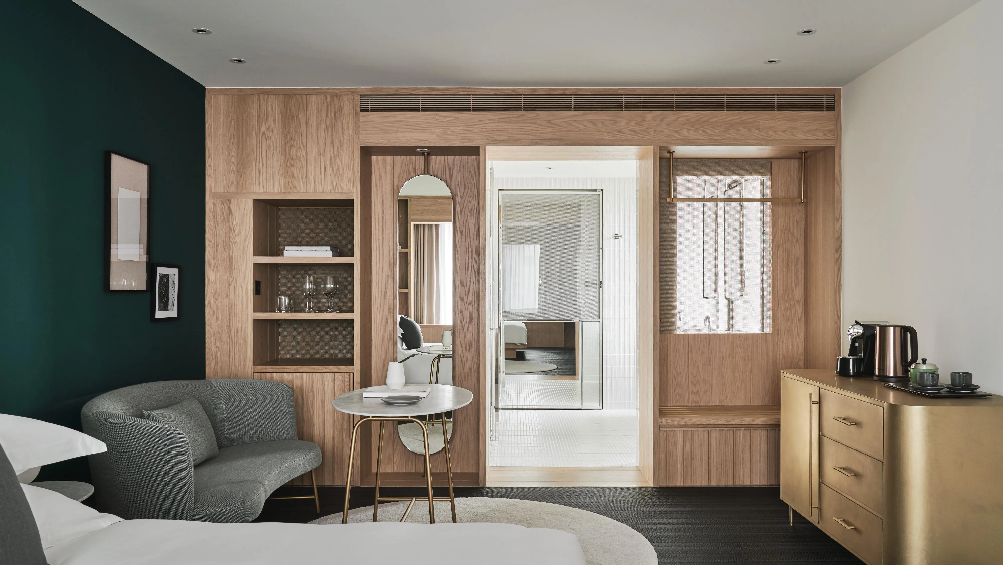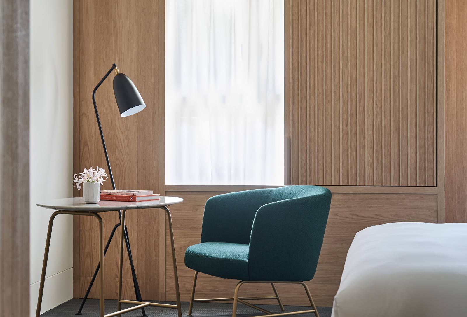 此外,酒店的每一個房型也都根據需求訂製了相應家具,包括落塵區的穿鞋凳、床頭櫃、沙發與床架。我們利用多年的沙發和木工經驗,運用Kvadrat羊毛布,打造出柔軟舒適且厚實包覆的家具,傳遞出如庇護所般的溫暖與穩定感。
